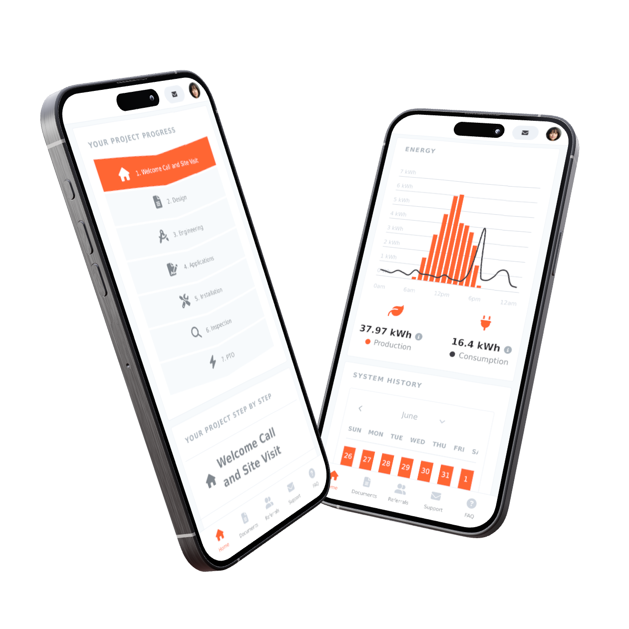 Everything about your Solar Project, from the Contract, to Invoices, Warranties, Manuals and more are made available to you within a dedicated area in the app. You will never wonder where any of your important documents are.